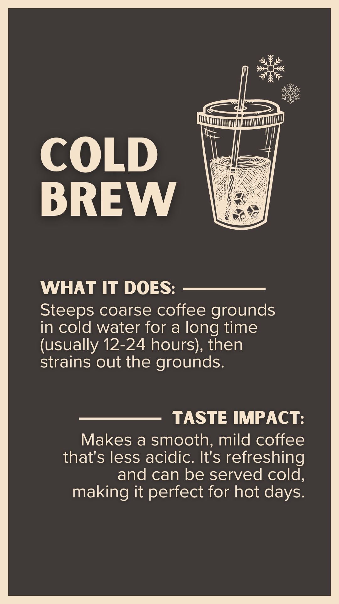 Cold brew is a long process that is usually done over the course of a full day. Measurements of both coffee and water are relative to the amount of cold brew you want to make but you will typically have a 1:8 ratio meaning 8 grams of water to every 1 gram of coffee.